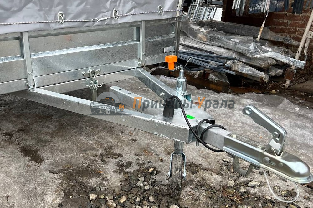 Рама прицепа несущая, состоит из продольных лонжеронов и поперечных балок, изготовленных из гнутых стальных профилей и труб прямоугольного сечения (60*40*2 мм). Прицеп комплектуется V-образным дышлом из профиля 60*40*2 мм, с удлинителем дышла из профиля 60*40*3 мм.