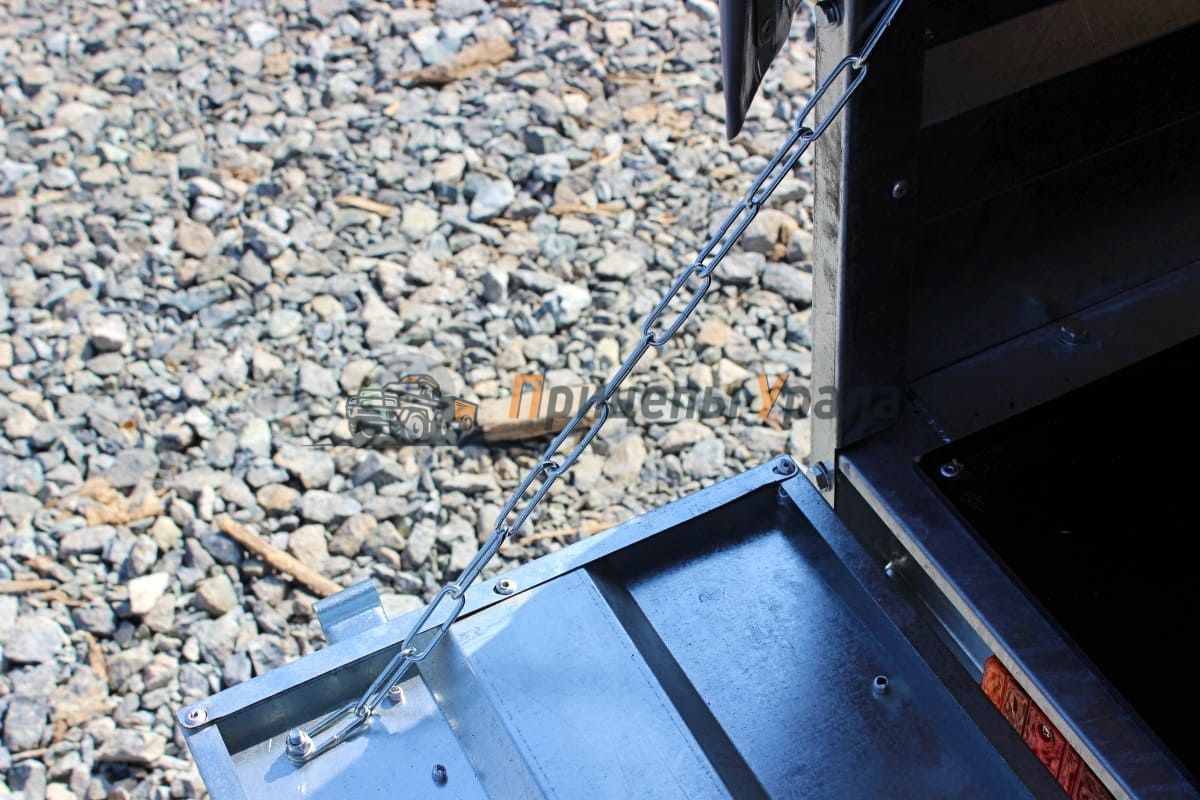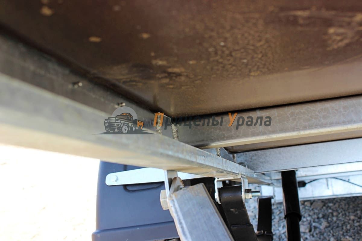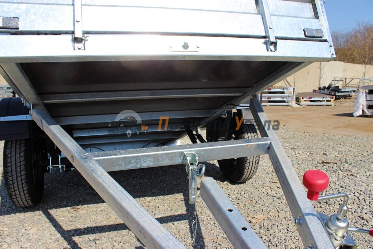 Передний и задний борта прицепа откидные. Борта не оснащены фанерой. Толщина борта 0,8 мм. Стойка борта толщиной 1,5 мм.