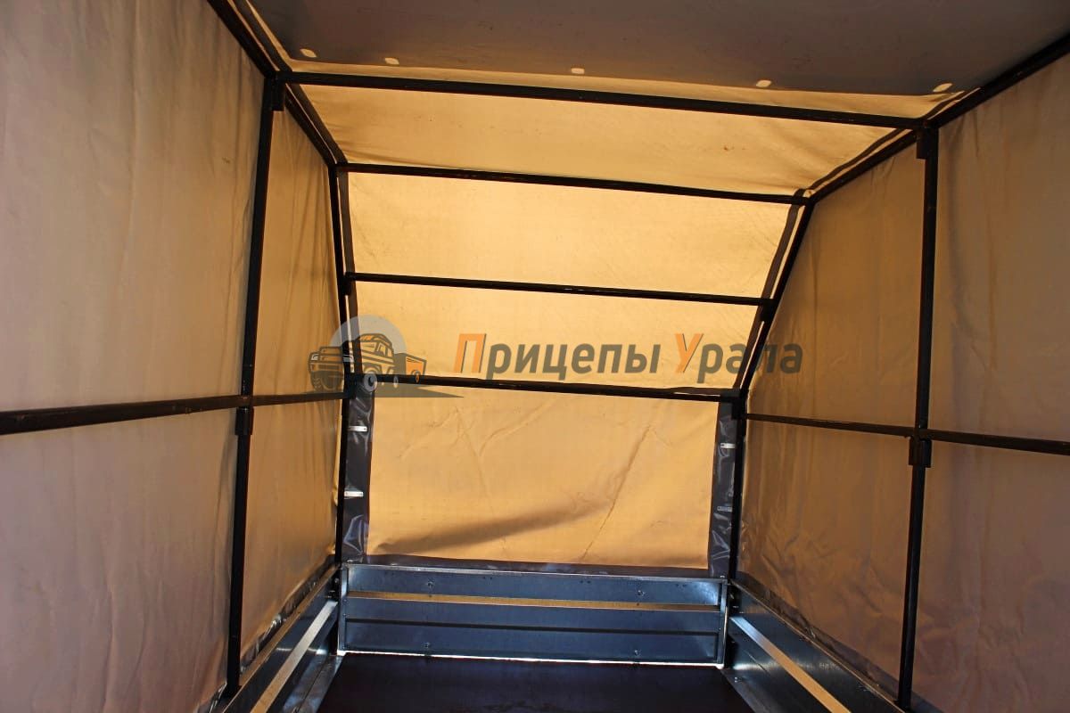 Пол платформы выполнен из фанеры толщиной 6 мм. Дополнительно можно установить тент с каркасом для защиты груза от атмосферных осадков и дорожной грязи. Тент выполнен из плотной тентовой ткани с овальными люверсами и тросом с карабинами. Каркас выполнен из профиля 20*20*2 мм, болтовой.