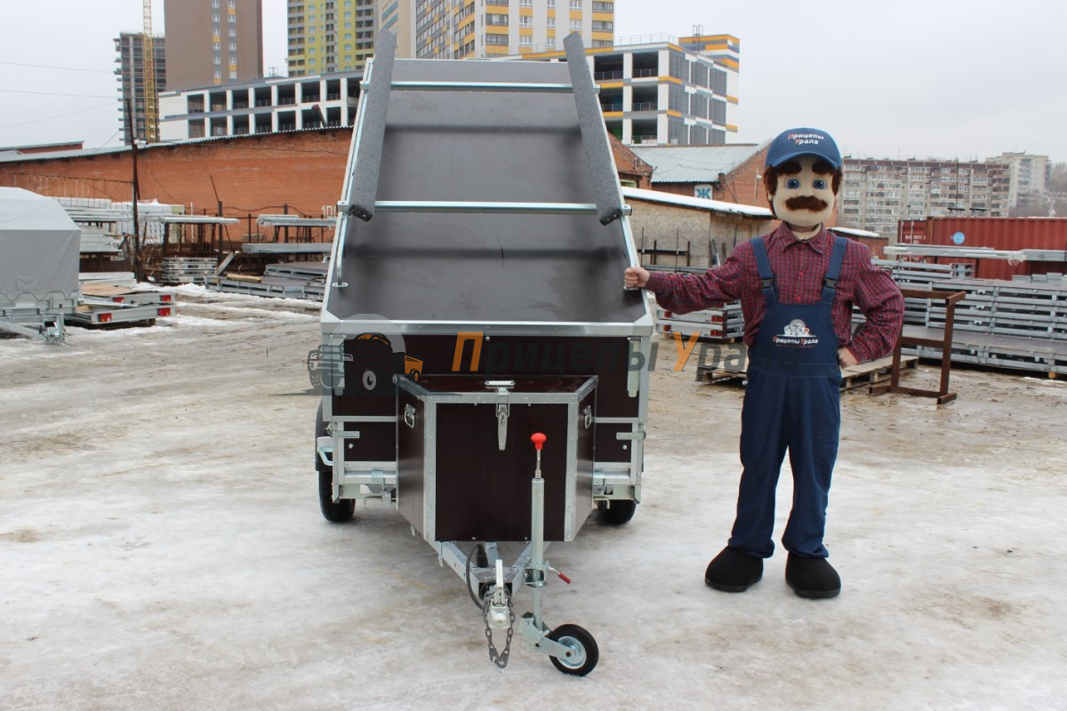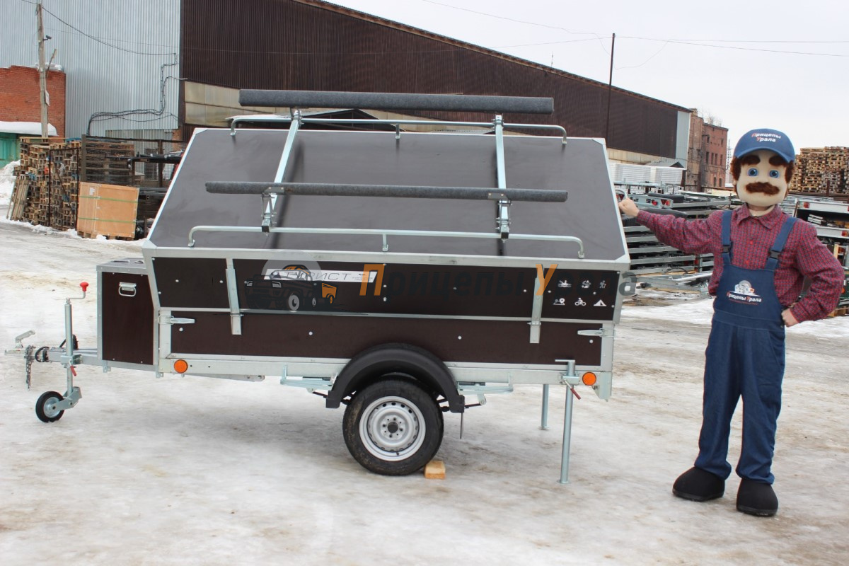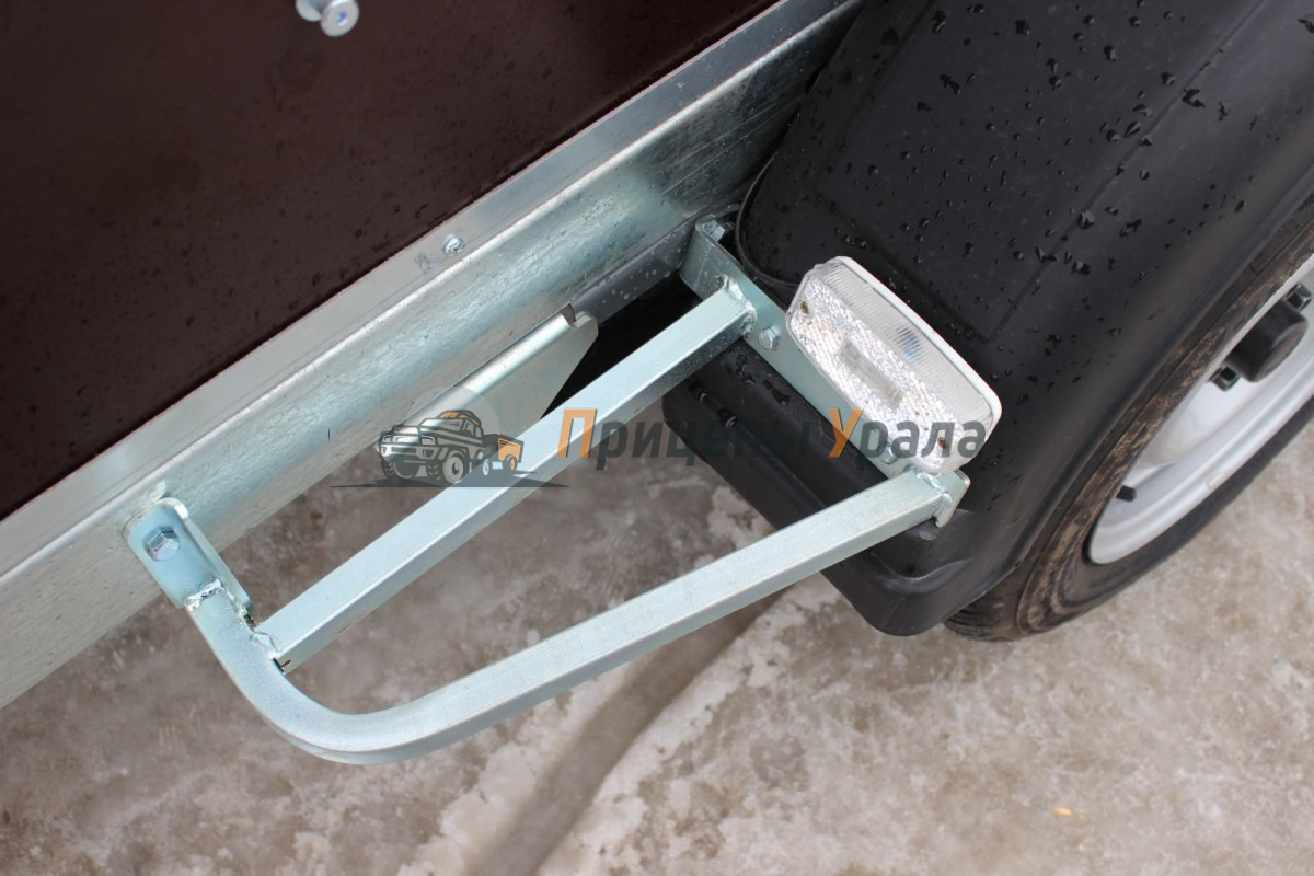 Рама и дышло прицепа. В основе прицепа – оцинкованная рама, укрепленная в центре силовым подрамником, предотвращающим деформацию на скручивание. Цинкование рамы гарантированно защищает прицеп от коррозии металла в результате воздействия влаги и дорожных химреагентов. Дышло прицепа выполнено в V-образной форме, лучи которого соединены между собой двумя прочными стальными пластинами с удлинителем дышла. Он может быть установлен в трех положениях: 1,2 м, 1,45 м и 1,85 м от переднего борта прицепа. В повседневной эксплуатации это позволит использовать прицеп в том числе и для перевозки длинномерных грузов, выступающих за габариты прицепа.