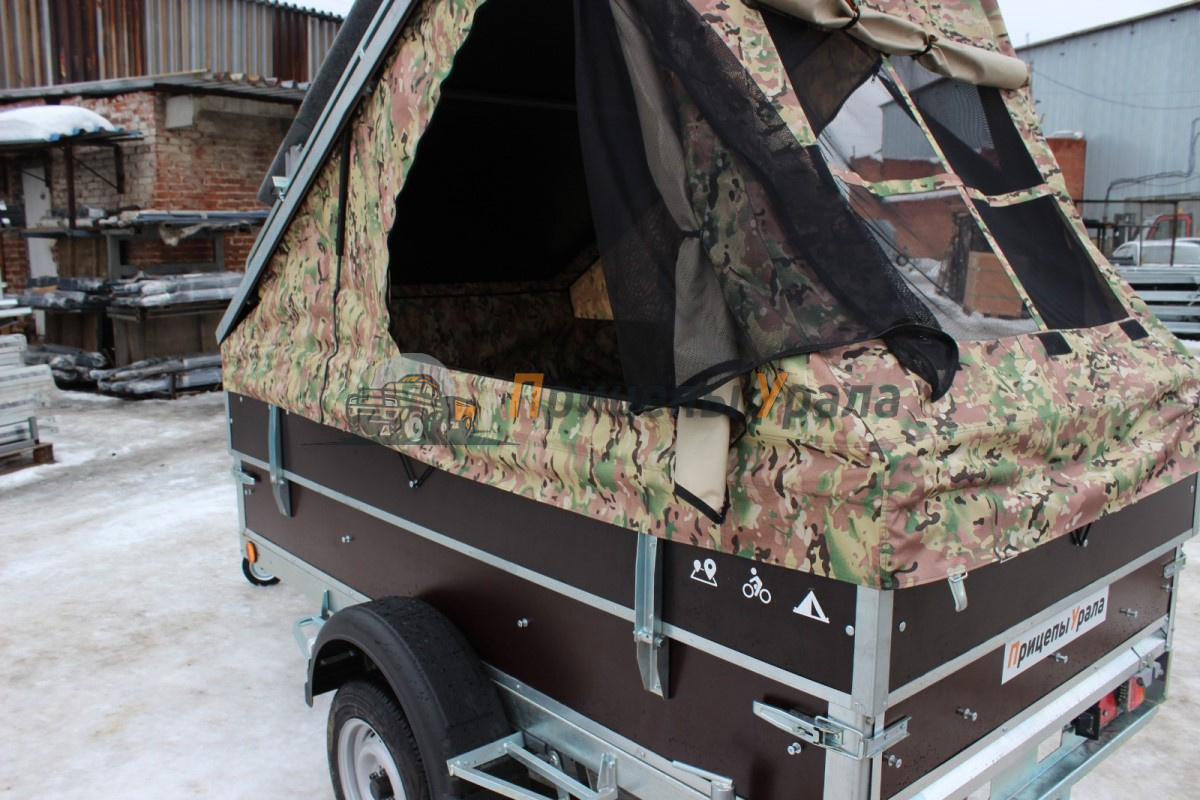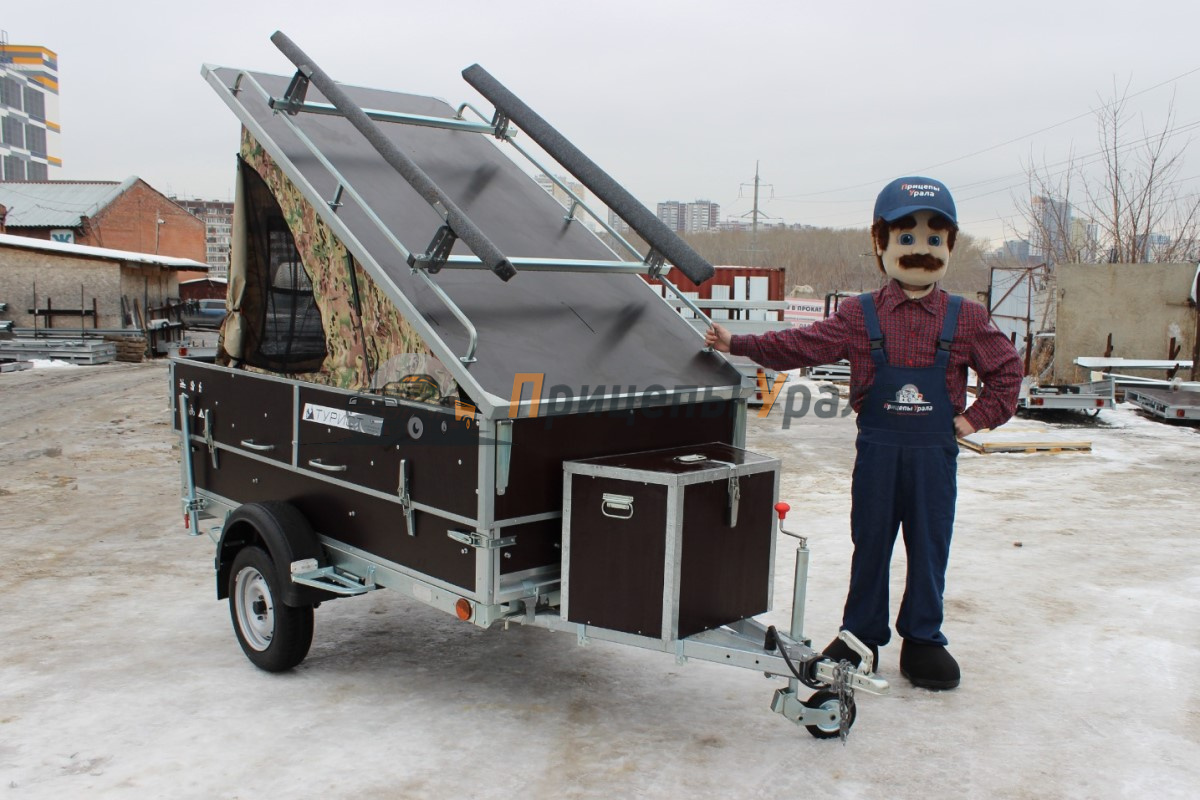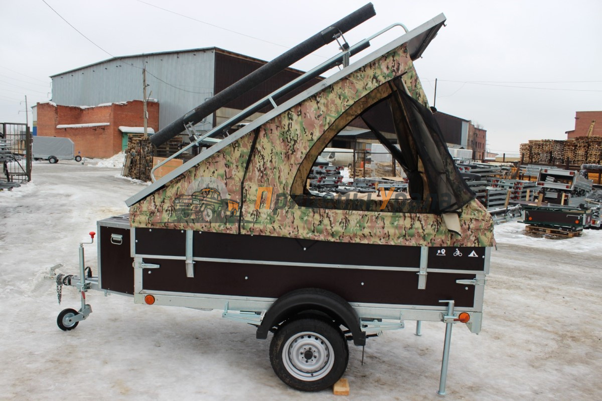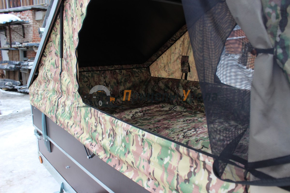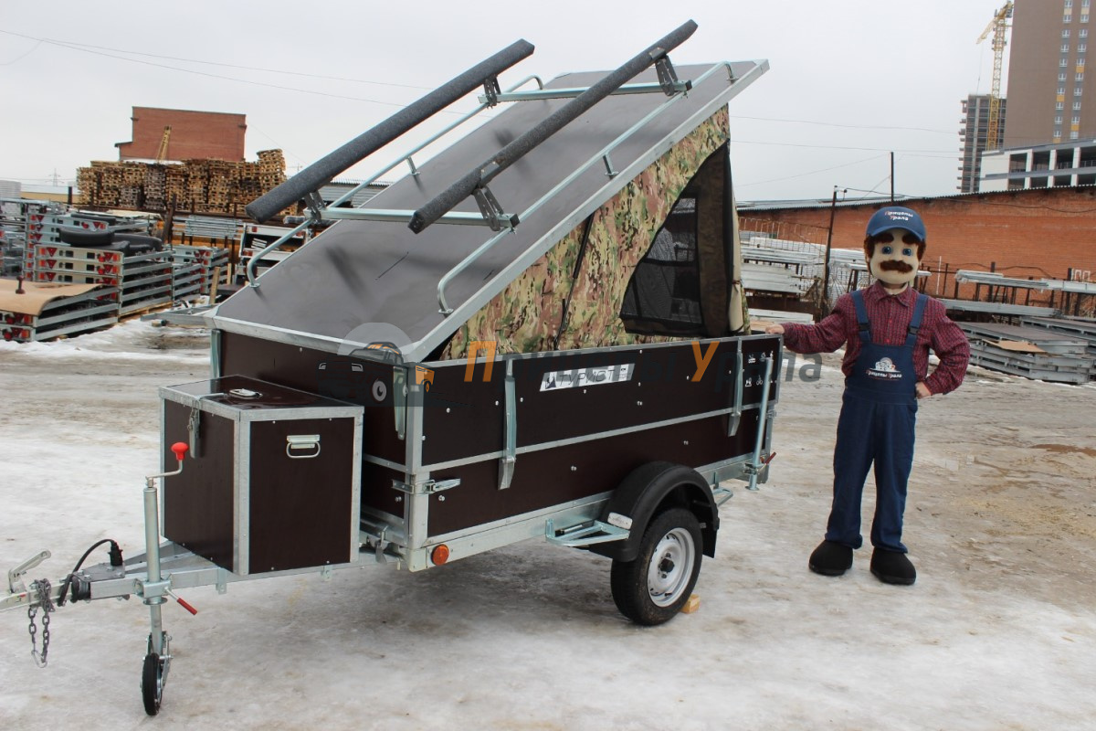 ● Верхнее багажное отделение (непосредственно сам надстраиваемый модуль) предназначено для часто востребованных вещей, когда нужно что-то быстро положить в прицеп (например, продукты, купленные по дороге) или достать из него. Модуль запирается сзади также на бидонные замки. Также он предназначен для установки ПАЛАТКИ.