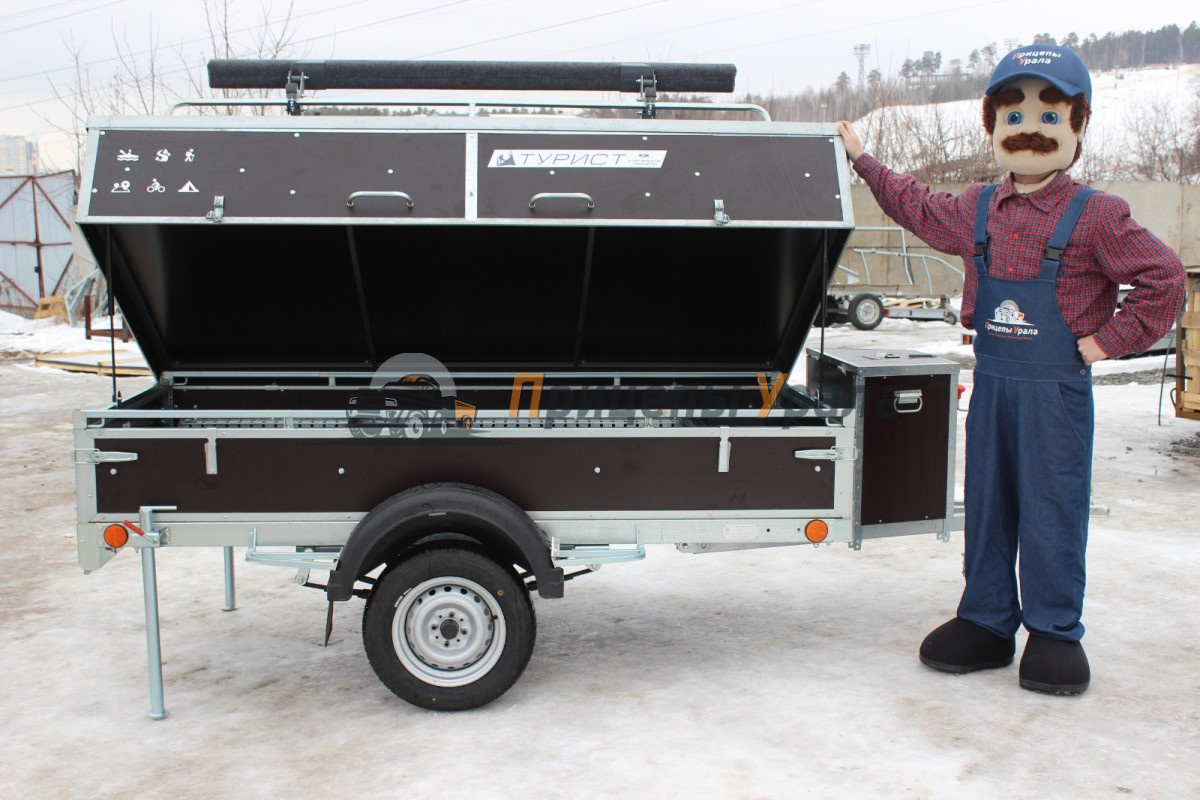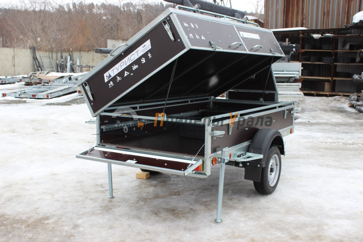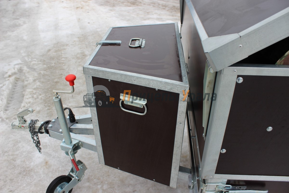 Для открытия багажных отделений и их фиксации в открытом положении установлены газовые упоры, которые значительно облегчают процесс поднятия крышки. Борта закрываются на надежные бидонные замки, которые можно дополнительно оснастить запирающимся на ключ подвесными замочками, тем самым гарантированно защитить груз от постороннего внимания. Таким образом, можно даже хранить какое-то время туристическое снаряжение в прицепе (когда снаряжение перевозится в автомобиле, как правило, каждый раз по возвращении из путешествия его приходится выгружать).