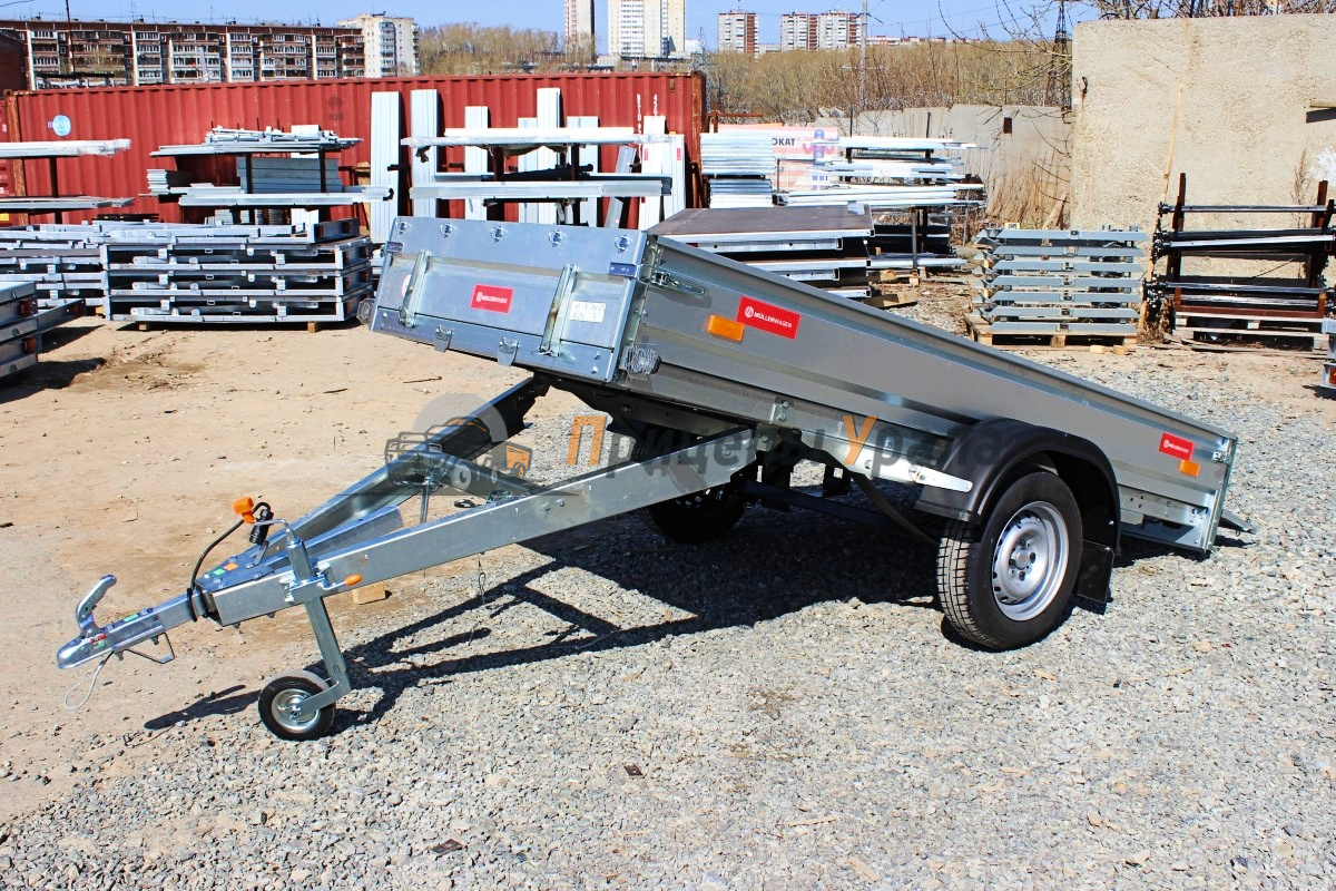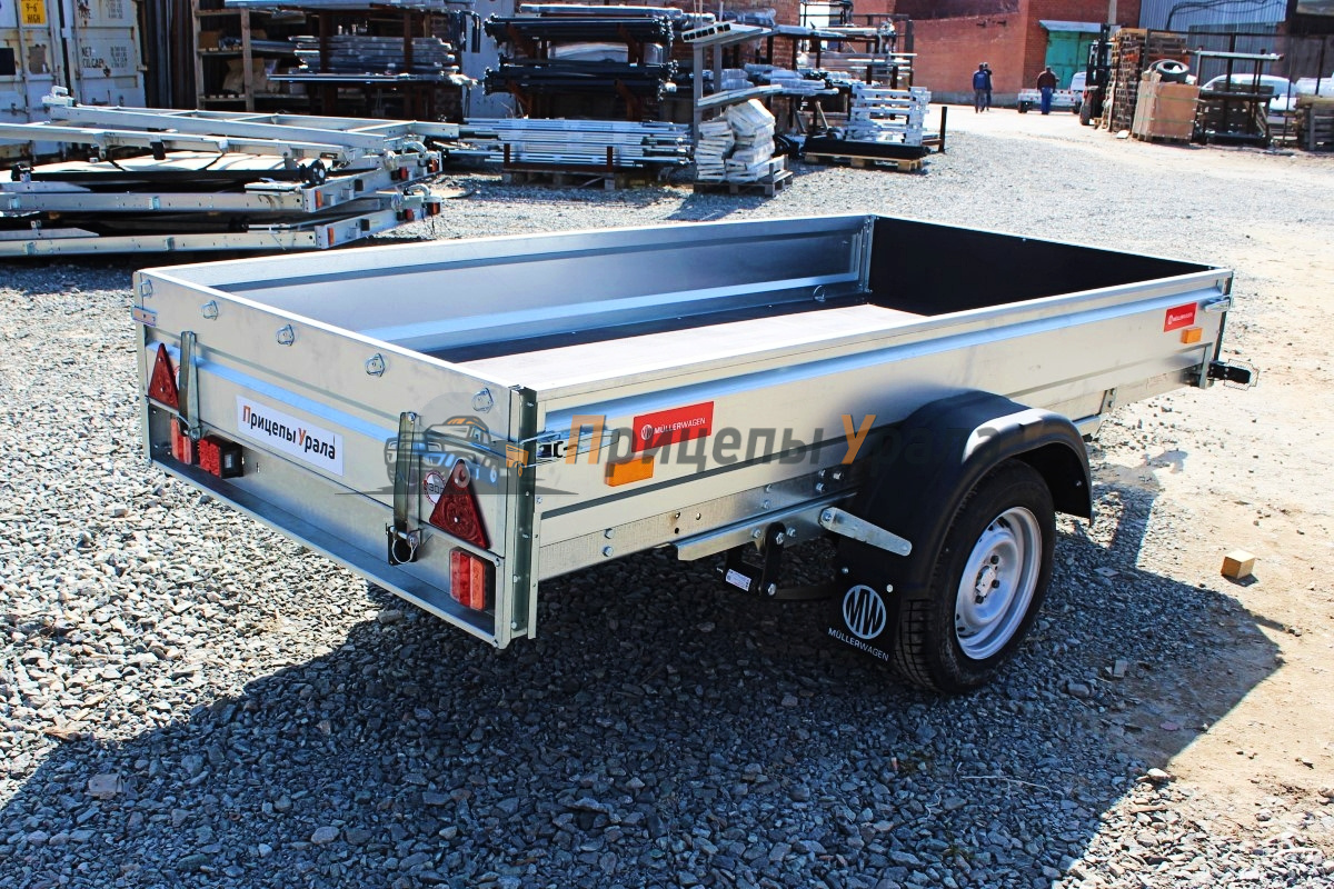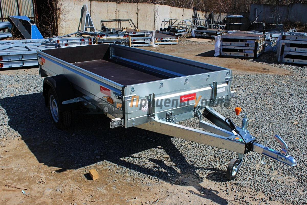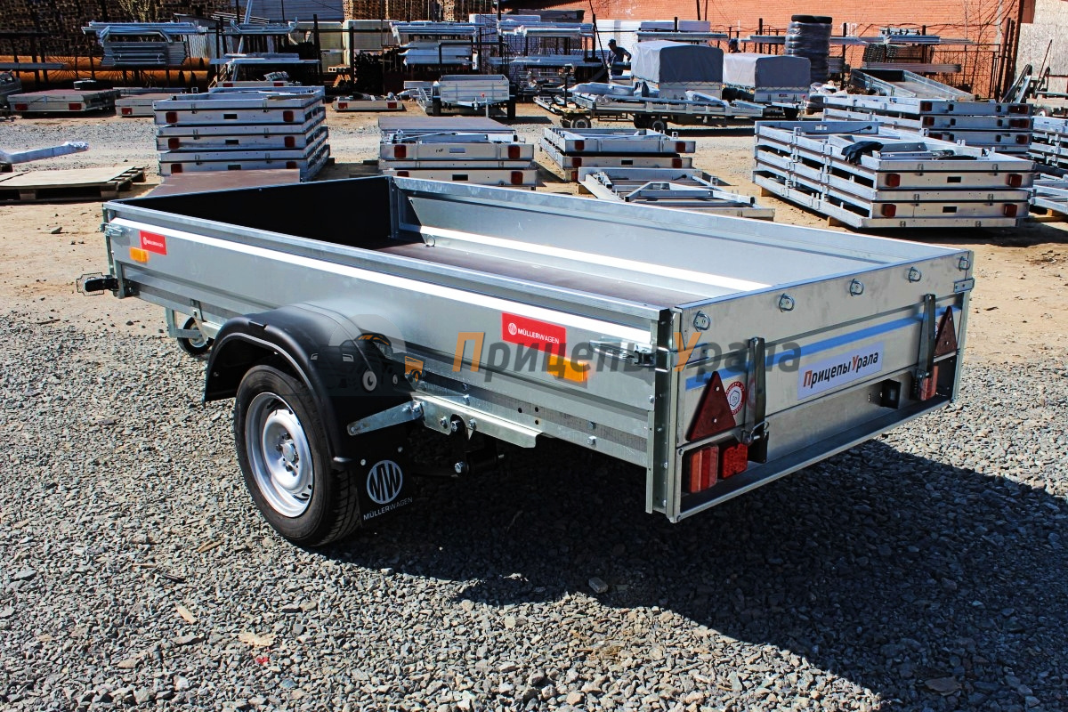 Прицеп «Muller Wagen» 1327 — полностью оцинкованный бортовой прицеп с самосвальной платформой, одноосный. Прицеп предназначен для перевозки различных грузов, в том числе сыпучих.