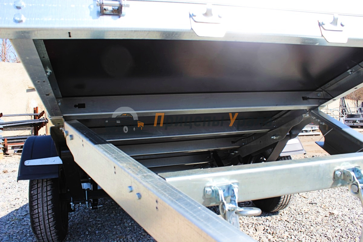 Задний и передний борт открываются вровень с полом прицепа, позволяя увеличить максимальную длину прицепа, тем самым открывая возможность перевозить длинномерный груз без ущерба удобству. Борта выполнены из оцинкованного стального листа толщиной 1,5 мм с усилением ребром жёсткости. Ребро жёсткости позволяет повысить устойчивость бортов к динамическим и ударным нагрузкам.