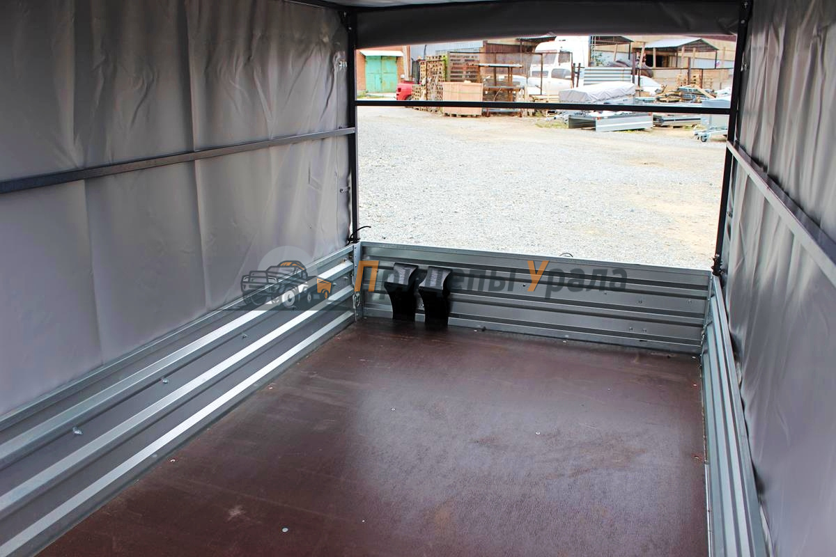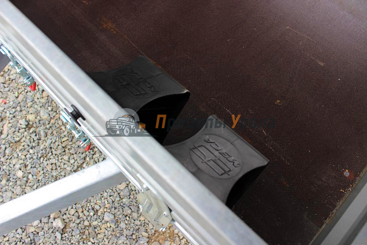 ● Дно прицепа выполнено из многослойной ламинированной фанеры с противоскользящим покрытием. Устойчиво к износу и воздействию влаги.