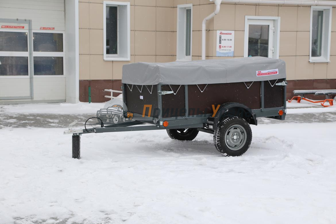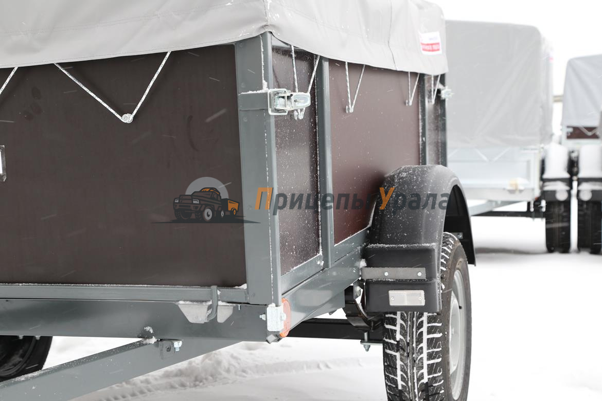 Для защиты груза от атмосферных осадков и дорожной грязи на прицеп можно установить комплект дуг и тенты высотой 0,25 и 0,75 метра от верхней кромки борта прицепа.