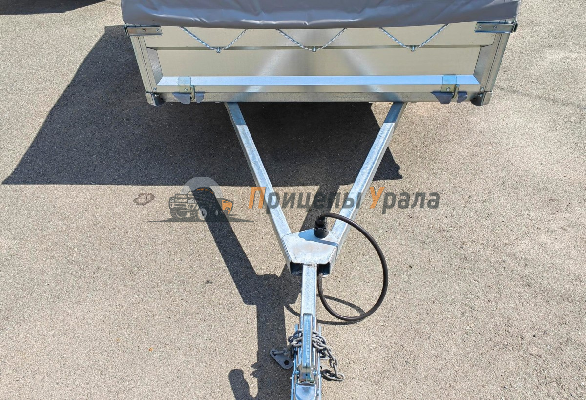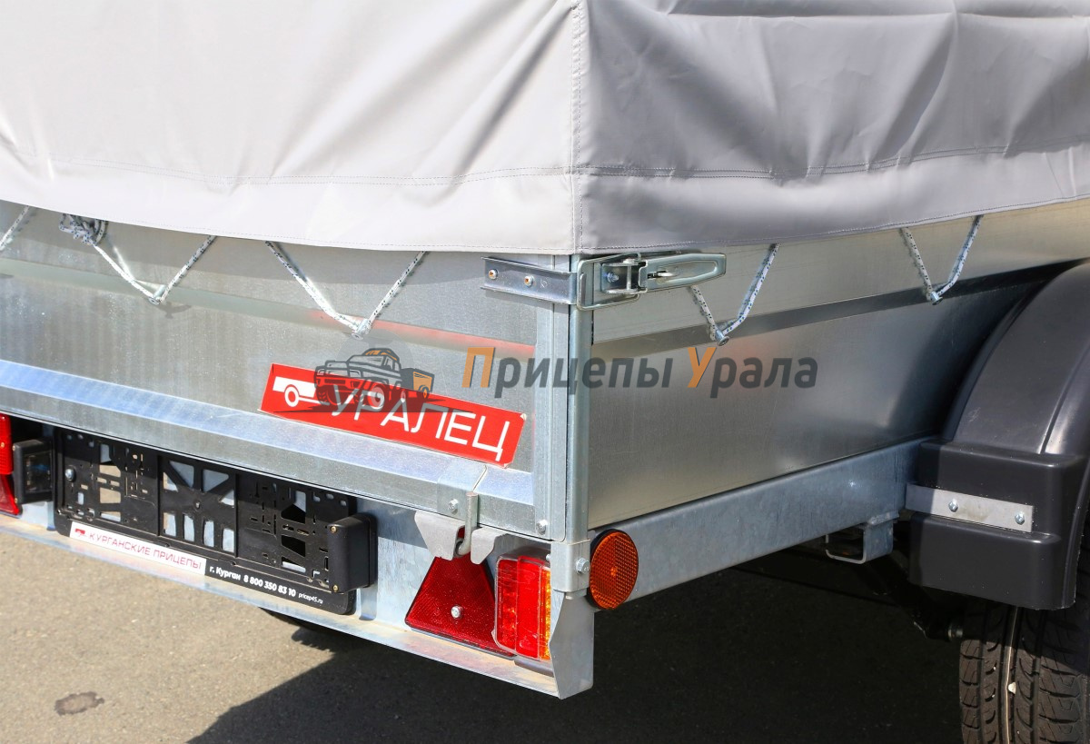 Для защиты груза от атмосферных осадков и дорожной грязи на прицеп можно установить комплект дуг и тенты высотой 0,25 и 0,75 метра от верхней кромки борта прицепа.