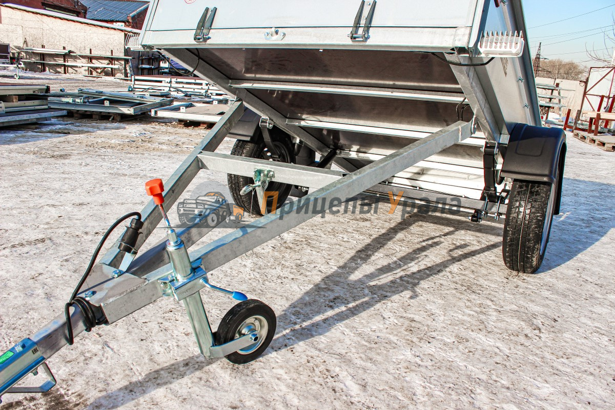 Стальная сварная рама придает максимальную жесткость и прочность всей конструкции прицепа. Рама прицепа выполнена из трубы 60х40х2 мм, оцинкована методом горячего цинкования, благодаря чему устойчива к коррозии.
