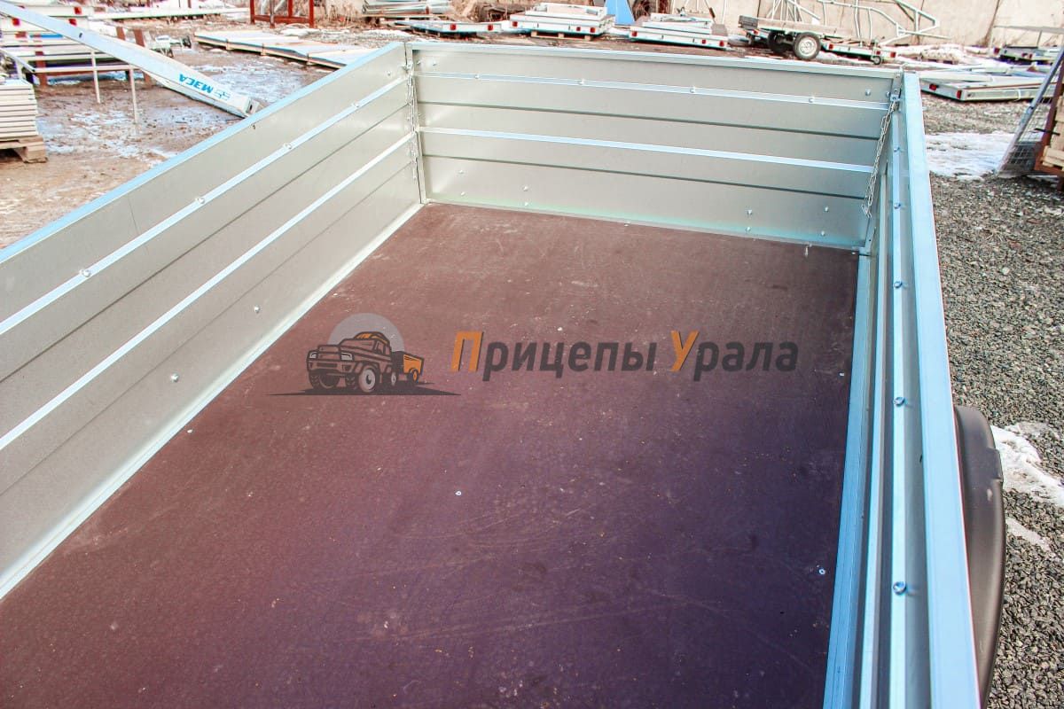 Дно прицепа выполнено из многослойной ламинированной влагостойкой фанеры с сетчатым противоскользящим покрытием, толщиной 9 мм.