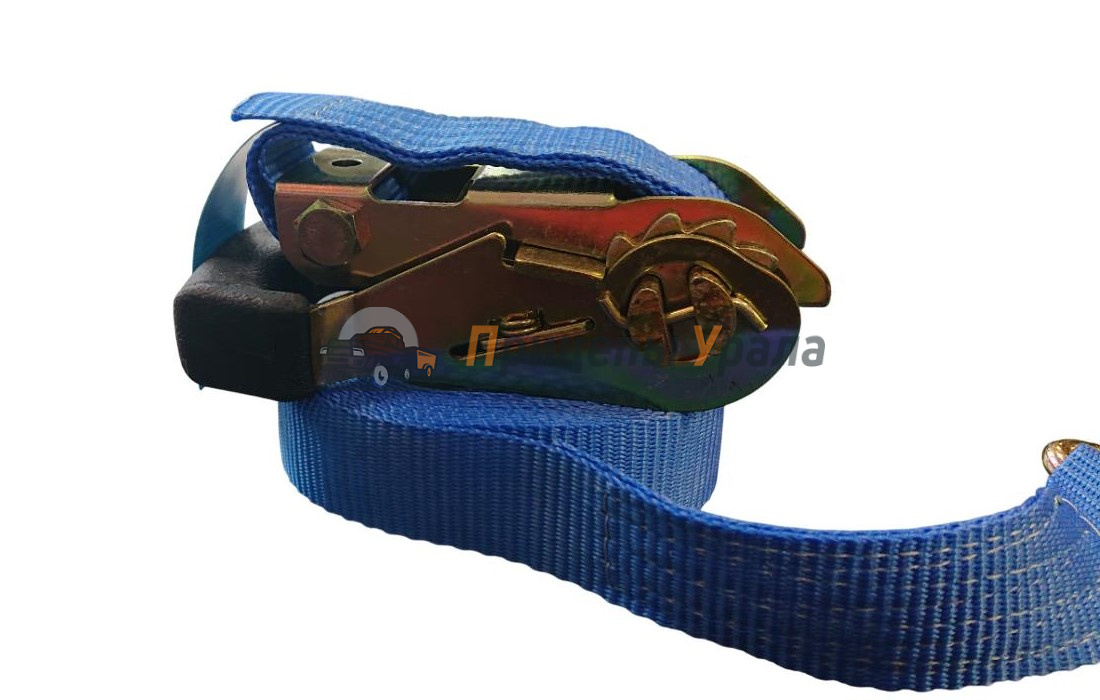 Ремень затягивается с помощью натяжного механизма, предотвращая его ослабление и надёжно фиксируя груз. Натяжное устройство оснащено зубчатым колесом, зубья которого имеют упор с одной стороны. Это зубчатое колесо позволяет выполнять прерывисто-вращательные движения только в одном направлении, блокируя движение в другую сторону, тем самым предотвращая самопроизвольное ослабление ленты.