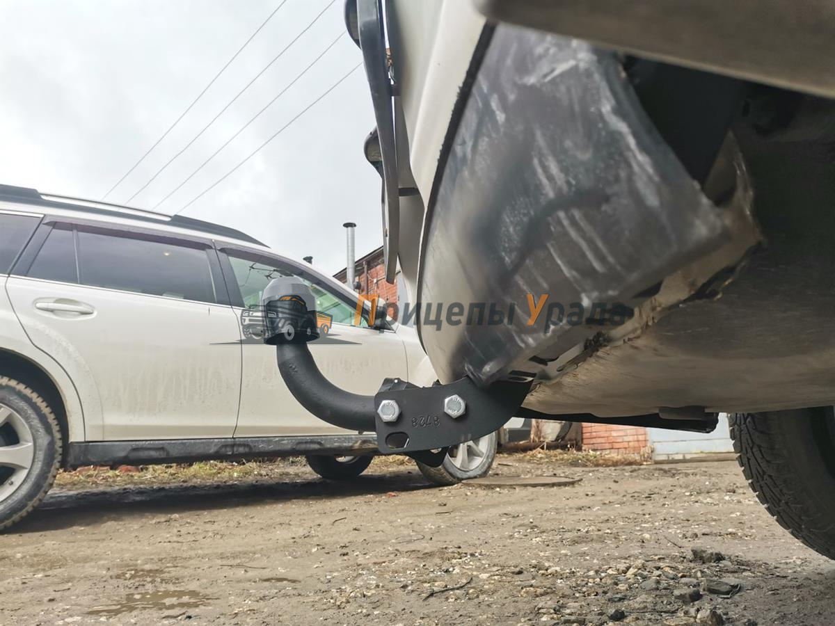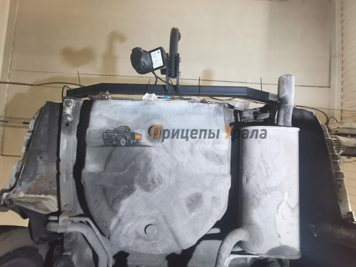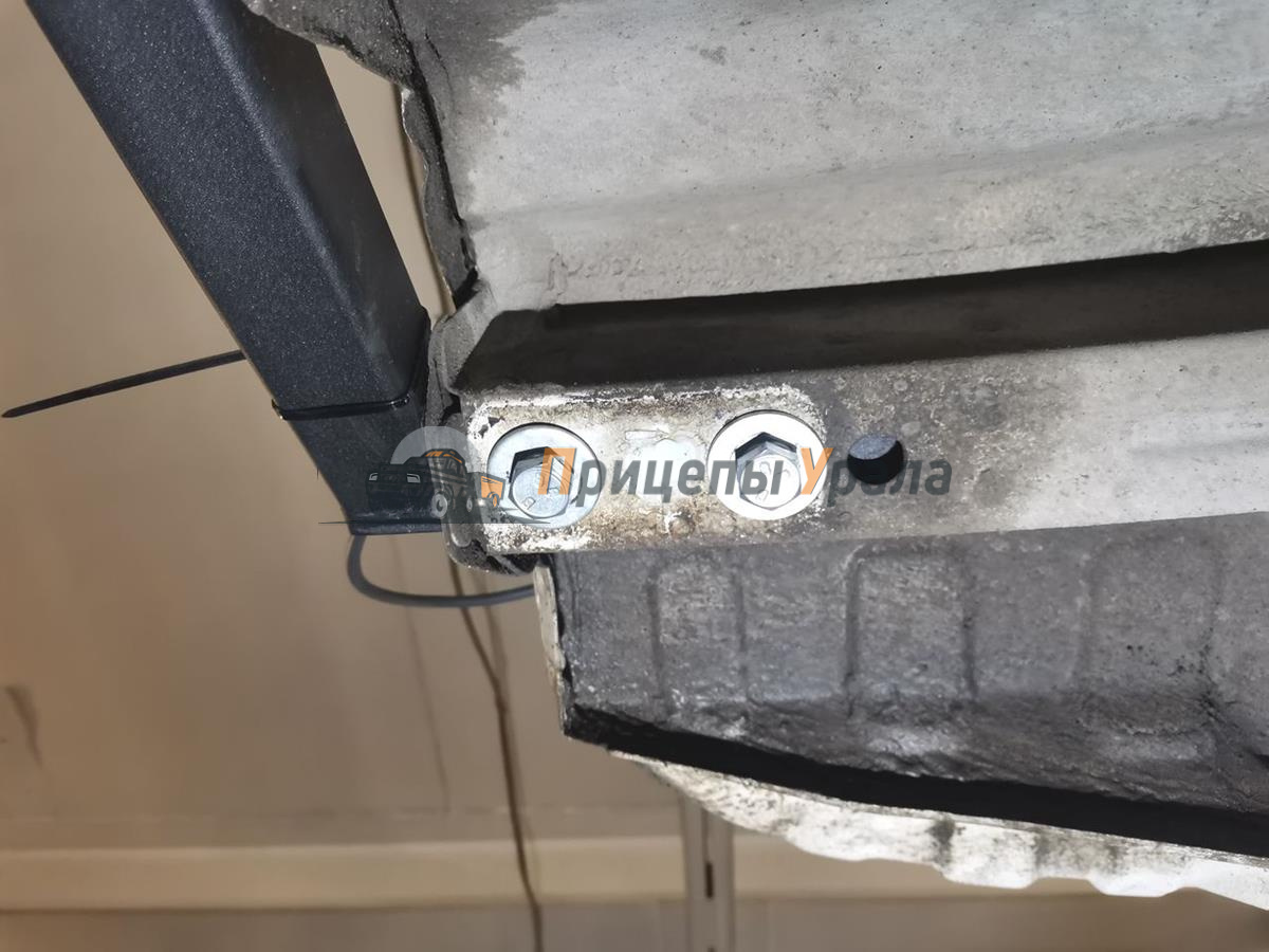 Особенности монтажа: Снять бампер. Вставить фаркоп внутрь лонжеронов, закрепить болтами М12х40 (4 шт.) через штатные отверстия. Подрезать бампер по необходимости. Возможно потребуется подрезка ребер жесткости внутри бампера.