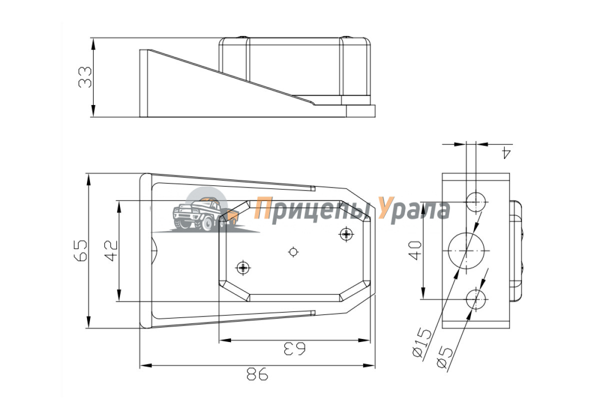 Фонарь габаритный с кронштейном FT-001BK используется для обозначения боковых габаритов прицепа. Источником света является светодиод.