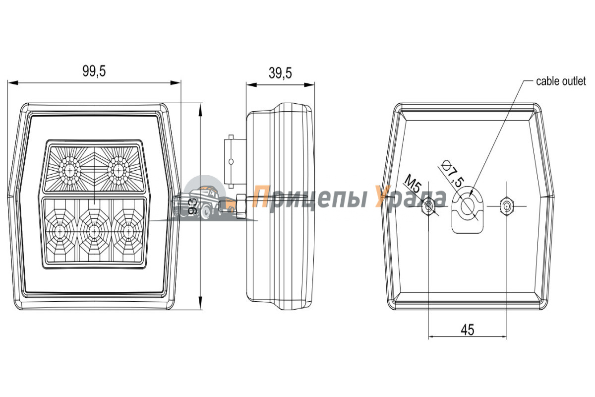 - стоп сигнал – 12В/24В = 0,08A/0,08A
