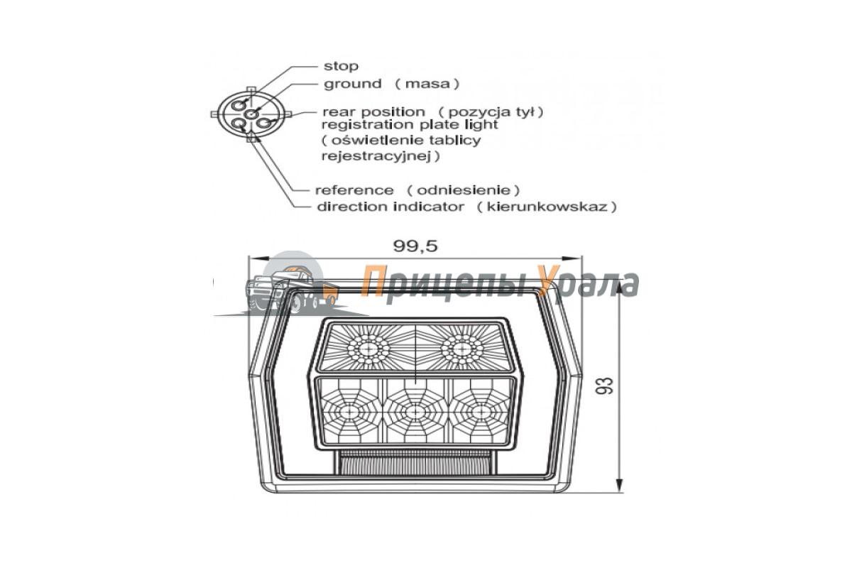 - свет габаритный + освещение номерного знака – 12В/24В = 0,14А/0,14A