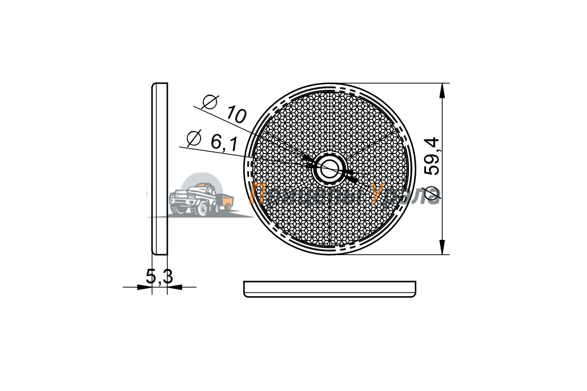 Отражатель оранжевый (круглый d60) с центр.отверстием фото