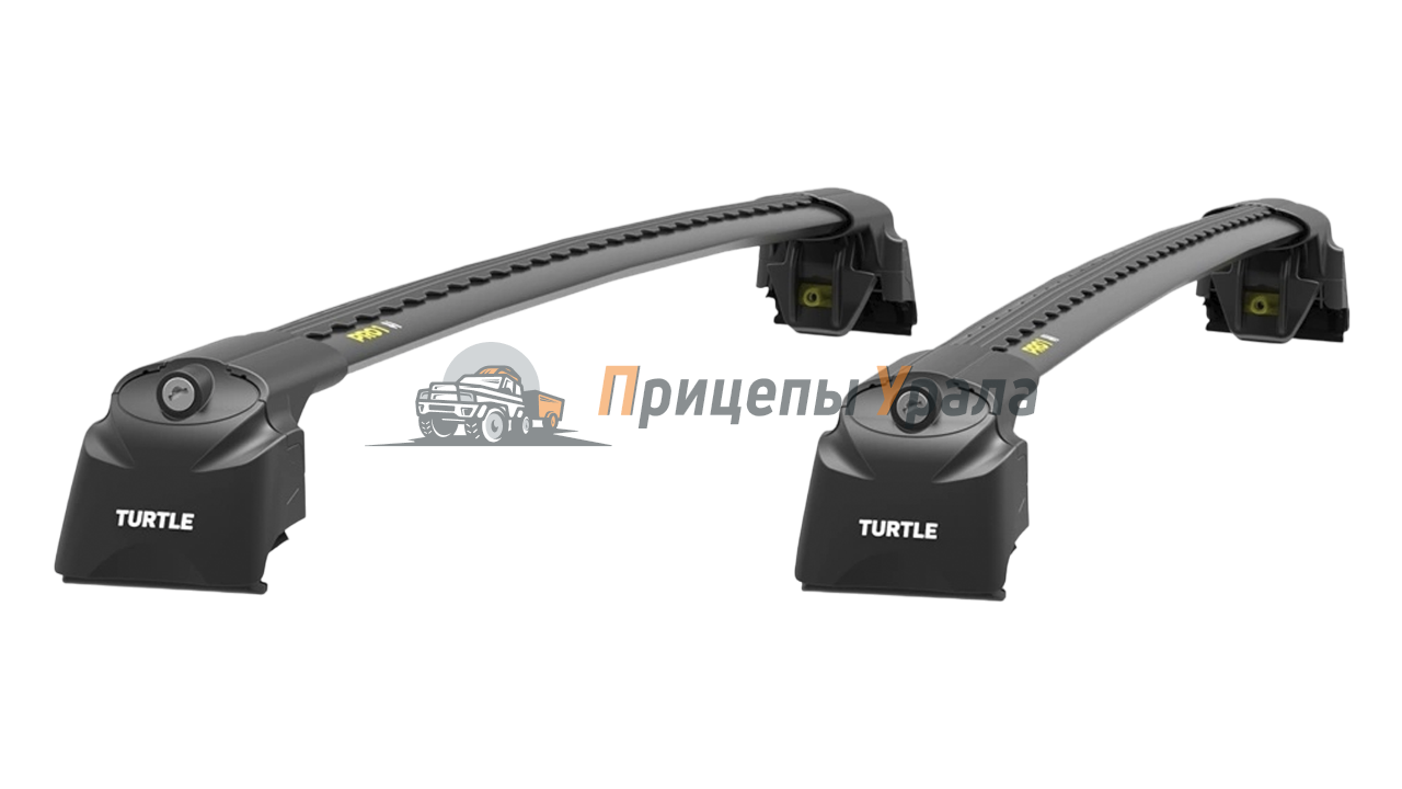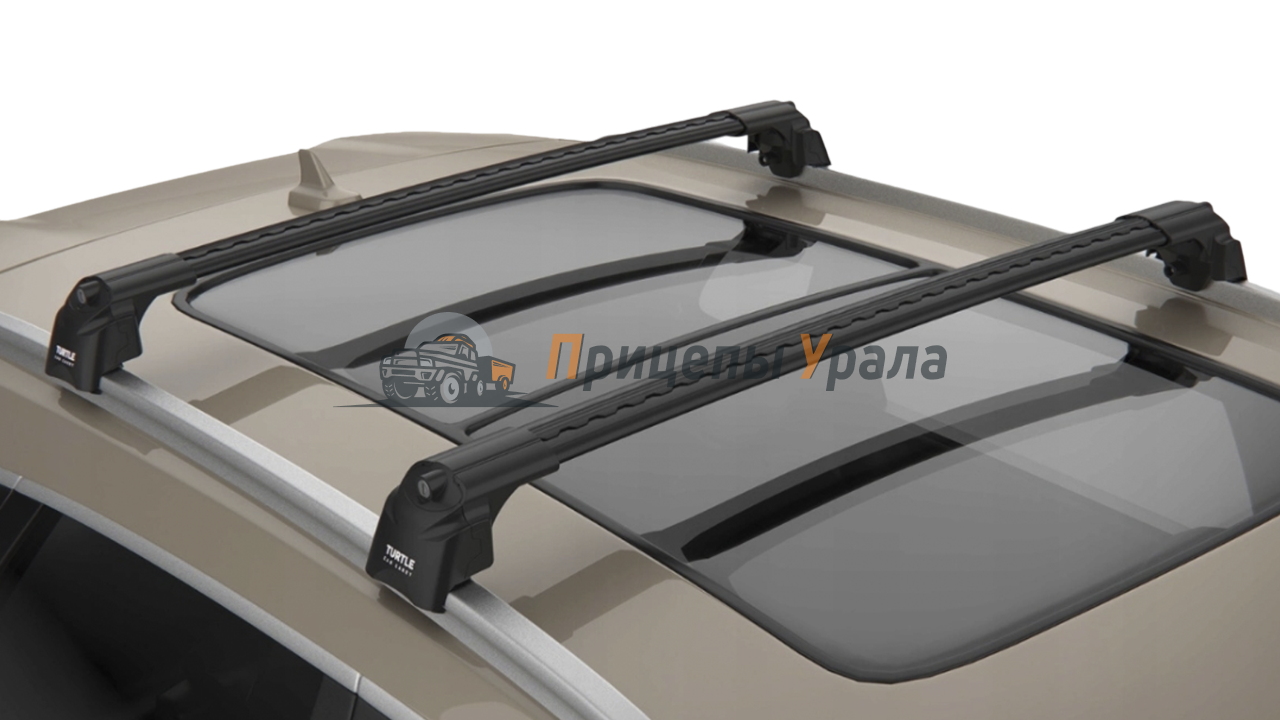 Багажник Turtle AIR 2 на интегрированные рейлинги (черный) крепится на рейлинги автомобиля с помощью специальных опор. Устанавливается на интегрированный рейлинг (между рейлингом и крышей нет расстояния). Изготовлен из алюминия и ABS пластика. Закрывается на ключ. Поперечины размером 106 см. Длина в меньшую сторону корректируется самостоятельно. Багажник серии Turtle AIR 2 выпускается в двух цветах на выбор: серый и черный.